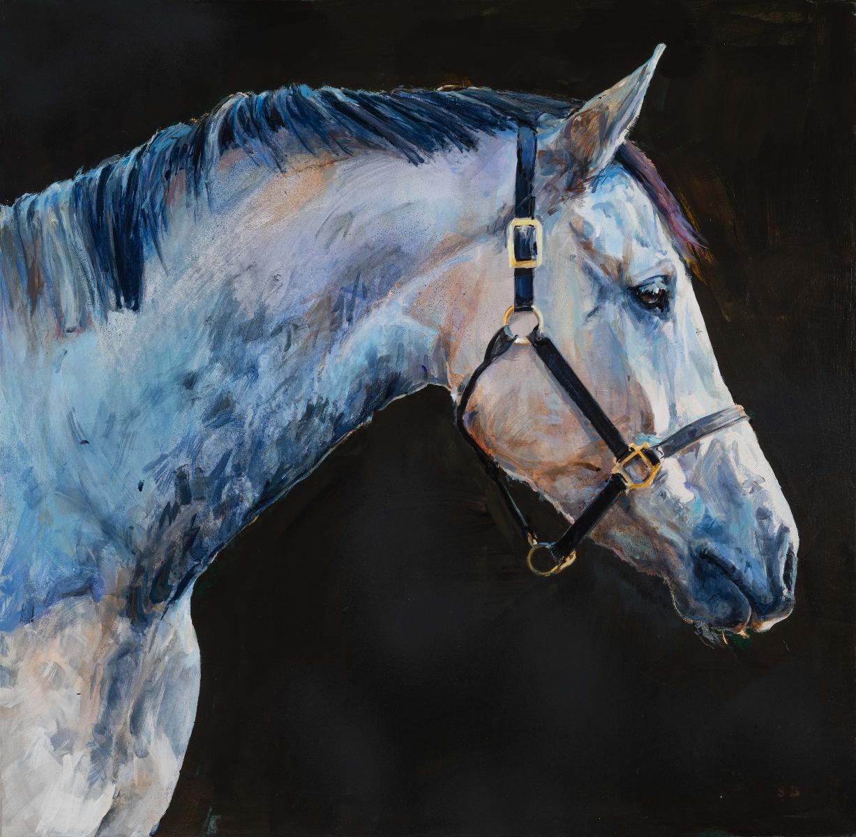 Knowing her subject matter, Sophy paints the horse with precision – a complete understanding of the anatomy, the physicality, the graceful demeanor even capturing a pony’s subtle detections of unfamiliar movement all translating the emotion and unpredictability of the horse on canvas.